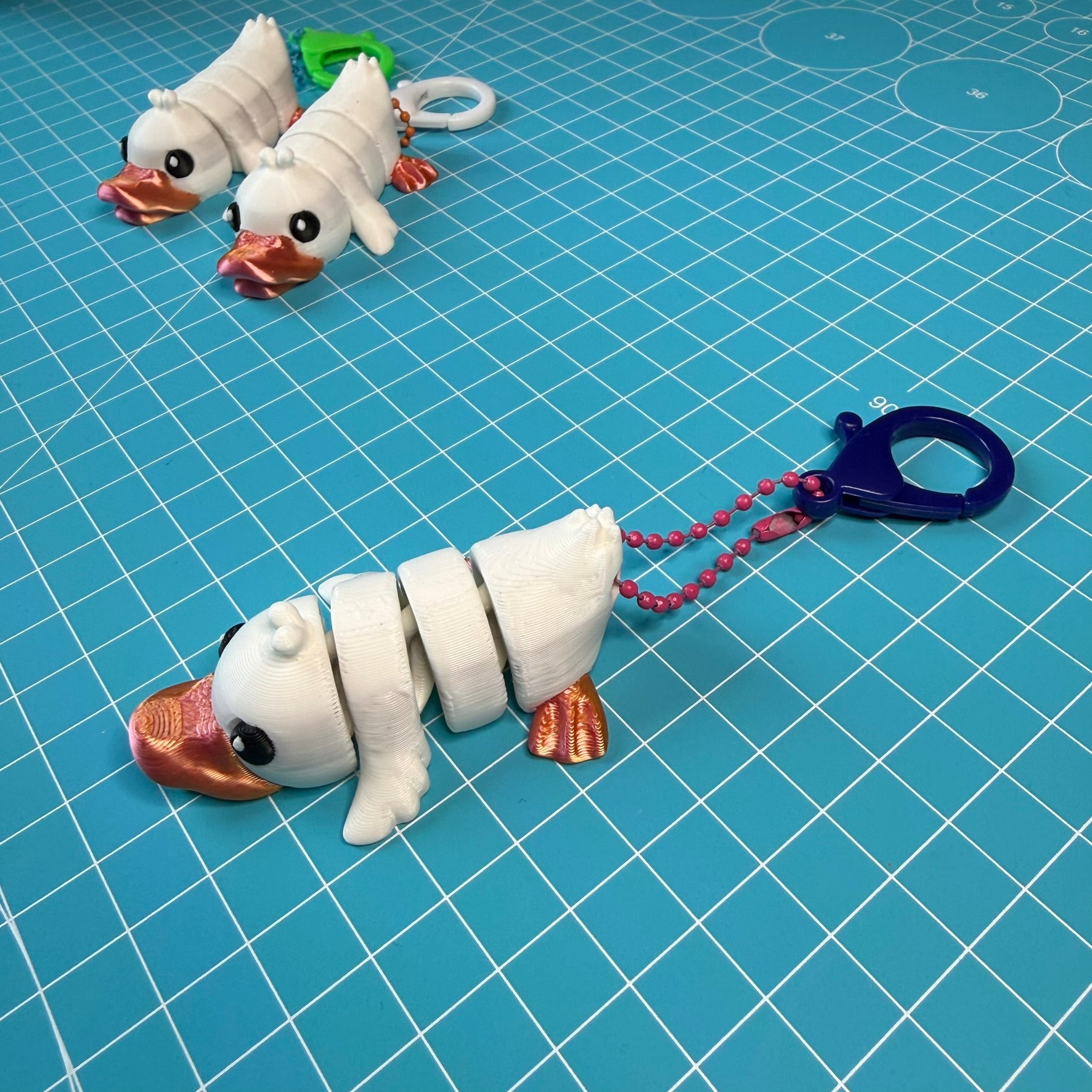 Dieser süße Flexi-Ducky-Schlüsselanhänger ist eine kleine Portion Freude für deine Hände. Sein beweglicher, gelenkiger Körper bewegt sich sanft und gleichmäßig und sorgt für ein befriedigendes taktiles Feedback, das die Hände beschäftigt und den Kopf beruhigt. Perfekt als Mini-Fidget-Toy, Stressabbau-Begleiter oder niedliches Accessoire für Tasche, Rucksack oder Schreibtisch.